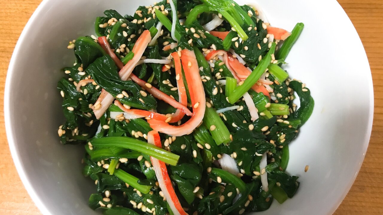 ほうれん草とカニカマのごま和えほうれん草とカニカマのごま和えを作ってみましたお弁当のおかずにもおすすめです!...