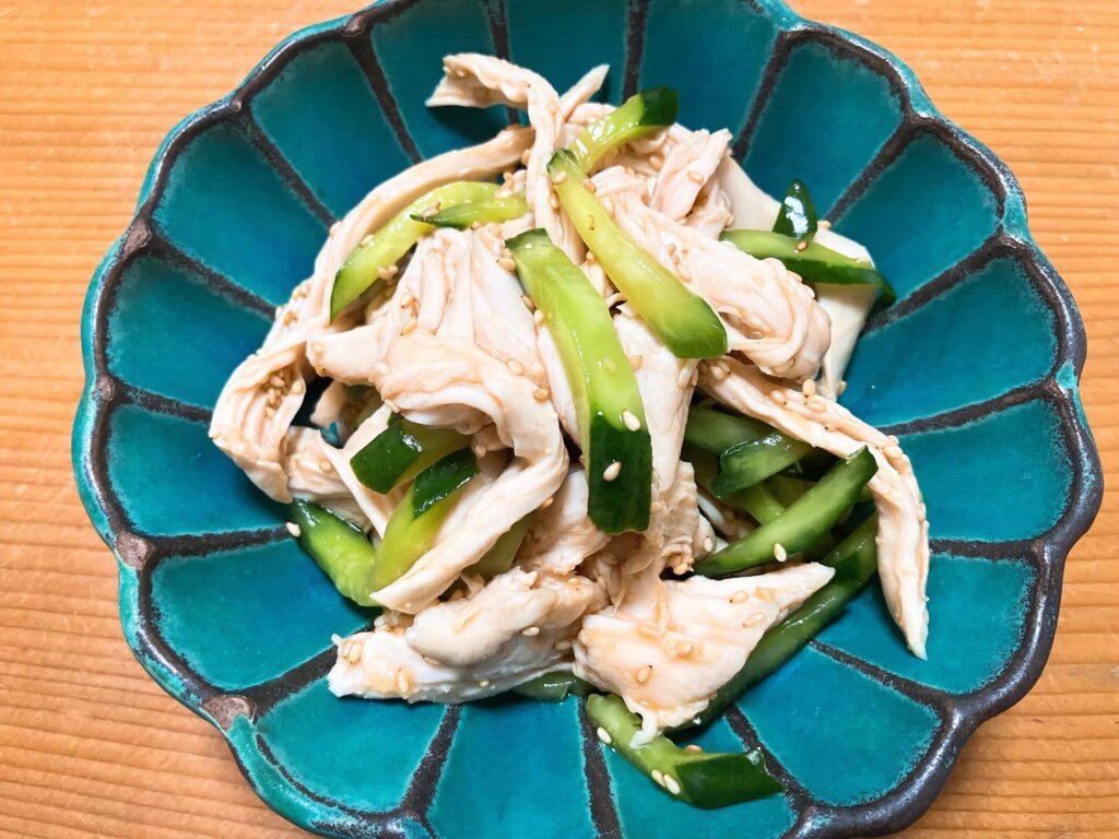 - 蒸し鶏をほぐして、きゅうりと☆の調味料混ぜ合わせたものを和えて完成!